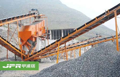 碎石生產(chǎn)線主要由振動給料機、顎式破碎機、反擊式破碎機、振動篩、膠帶輸送機、集中電控等設(shè)備組成。為滿足客戶不同的加工需要,可配備圓錐式破碎機、除塵 設(shè)備等。大塊石料經(jīng)料倉由振動給料機均勻地送進鄂式破碎機進行粗碎,粗碎后的石料由膠帶輸送機送到反擊式破碎機進行進一步破碎;細碎后的石料由膠帶輸送機 送進振動篩進行篩分,篩分出幾種不同規(guī)格的石子,滿足粒度要求的石子由成品膠帶輸送機送往成品料堆;不滿足粒度要求的石子由膠帶輸送機返料送到反擊式破碎 機進行再次破碎,形成閉路多次循環(huán)。成品粒度可按照用戶的需求進行組合和分級,為保護環(huán)境,可配備輔助的除塵設(shè)備。