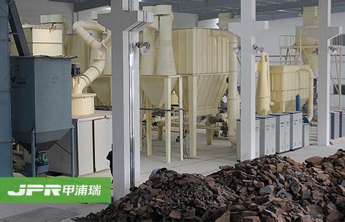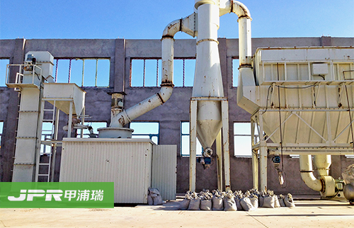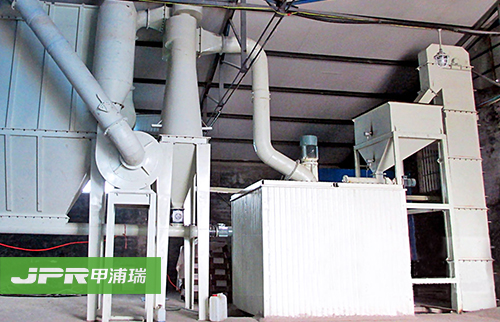 物料經(jīng)顎式破碎機破碎后,由斗式提升機送至儲料倉,通過電磁振動給料機把物料均勻連續(xù)地送到主機進行研磨,研磨后的粉末在鼓風機的作用下吹向選粉機進行分 選,分選后的細粉由管道送至儲料倉,后經(jīng)出料閥輸出即為成品。整套生產(chǎn)線工作過程中氣壓為負,首先鼓風機吹出的空氣伴隨著細粉經(jīng)管道進入儲料倉上部的旋 風收集器內(nèi),由回風管道返回鼓風機,形成空氣循環(huán)利用。其次,集粉器下端裝有鎖粉器,其作用是將外界正壓氣體與集粉器負壓氣體隔離開,大大提高了產(chǎn)量。再 次,主機底部殘留的空氣和粉塵通過管道被送到布袋除塵器進行過濾,粉塵等雜質被布袋除塵器吸附,有效地保護了環(huán)境。